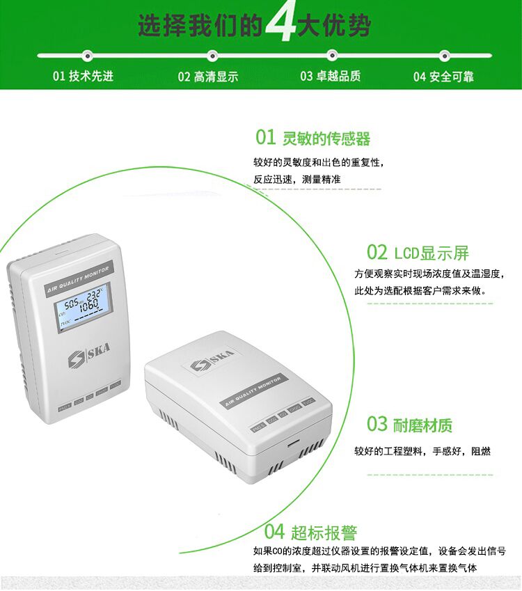 检测参数可选:CO,CO2,TVOC,CH2O及温湿度等......
