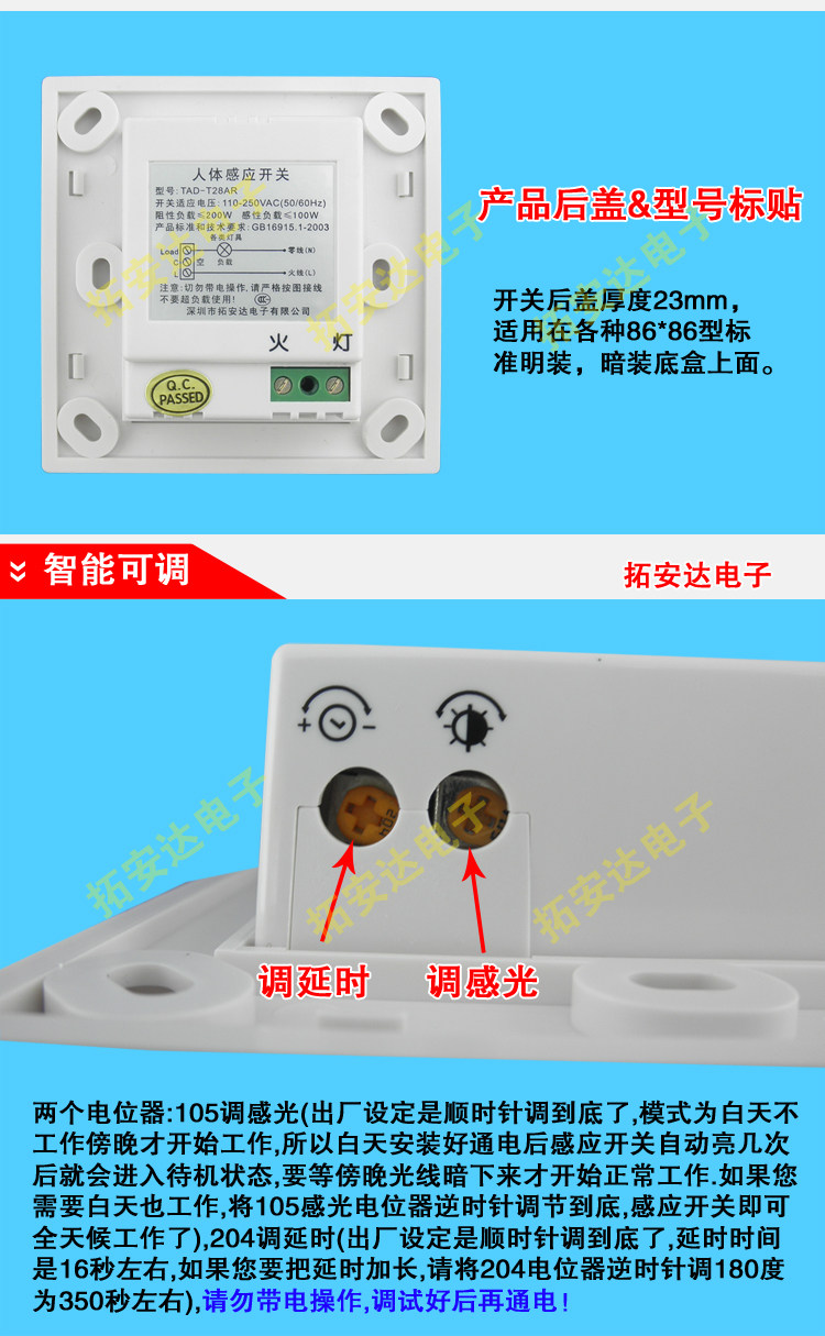» 红外线人体感应开关 楼道86光控开关 智能延时开关LED灯