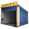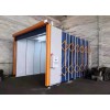 工作原理:移动伸缩前室由钢架结构和阻燃PVC布组成,通过平行四边形连杆机构或轨道驱动系统实现自动展开与合拢。工作时,前室沿轨道平滑移动至工件上方,形成封闭/半封闭空间进行喷漆;完成后收缩至一侧,节省空间并实现多工序共用场地。其核心系统包括: