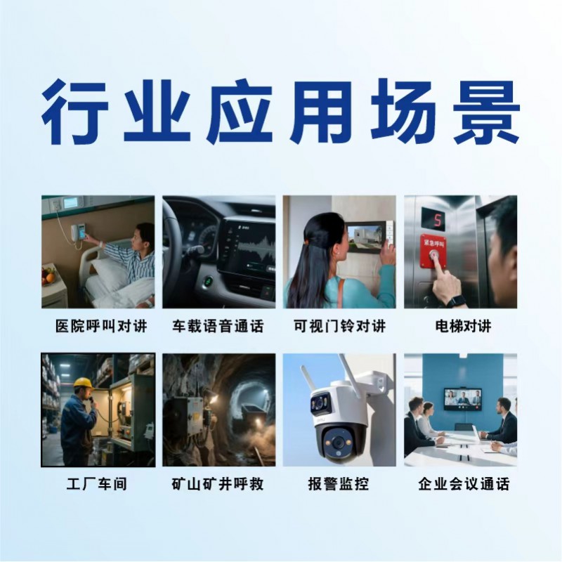 适配可视门铃、智能门禁等设备,在户外嘈杂环境(如马路旁、小区花园)中,可清晰拾取访客语音,同时消除环境噪音(如车辆鸣笛、人群喧哗)与设备回声,保障室内外语音交互清晰顺畅。
