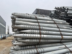 前期准备阶段,二者的核心差异体现在 “场地处理” 与 “设备需求” 上。绞龙地桩的前期准备愈简洁:无需大规模场地平整,仅需清理地表直径>10cm 的石块、杂草(避免叶片卡阻),对松软或起伏场地(坡度≤15°)可直接施工,无需压实处理;设备需求聚焦 “小型化、机动化”,通常配备电动螺旋钻机或液压打桩机(重量 2-5 吨),设备运输便捷,适合山地、丘陵等交通不便场景。守旧地桩的前期准备愈繁琐:预埋灌注桩需先按桩位开挖直径比桩体大 10-20cm 的孔洞(深层与桩长一致),若遇坚硬土层需用冲击钻破碎,孔洞开挖后需及时清理渣土,防止坍塌;混凝土预制桩则需对场地进行全部压实(压实度≥90%),避免植入时场地沉降,设备需搭配大型打桩机(重量 10-20 吨)与起重机,对场地平整度、承载力要求愈高,不适合复杂地形。此外,守旧地桩需提前准备辅助材料(如预埋灌注桩的钢筋笼、混凝土,预制桩的桩尖),而绞龙地桩仅需准备桩体本身,材料准备周期缩短 30%-50%。 核心施工阶段,二者的差异集中在 “施工速率” 与 “技术控制点” 上。绞龙地桩的核心施工流程为 “定位 - 植入 - 调平”,全程机械化操作:定位后通过钻机带动桩体旋转,螺旋叶片切削土壤并将其排至桩周,植入速度根据土壤特性可达 0.3-1m/min,单根桩施工时间仅需 5-15 分钟(2-3m 桩长);技术控制主要在 “垂直度” 与 “转速”—— 采用分段监测法(每植入 0.5m 测一次垂直度),偏差≤1%,同时根据土壤密实度调整转速(松软土壤 15-30r/min,密实土壤 10-20r/min),避免叶片变形。守旧地桩的核心施工流程愈复杂:预埋灌注桩需经历 “钻孔 - 下钢筋笼 - 浇筑混凝土 - 振捣 - 养护”,钻孔耗时与土壤硬度相关(硬黏土中每米钻孔需 10-15 分钟),混凝土浇筑后需养护 7-14 天(强度达 70% 以上)才能安装支架,单根桩施工周期长达 1-2 周;混凝土预制桩则需通过打桩机将桩体压入或打入土壤,施工时需控制锤击力度(避免桩体断裂),且每根桩需分段连接(焊接或机械连接),单根桩施工时间 30-60 分钟,后续仍需 2-3 天的土壤稳定期。从速率对比看,同等工程量下,绞龙地桩的施工周期比守旧地桩缩短 60%-80%,适合工期紧张的项目。